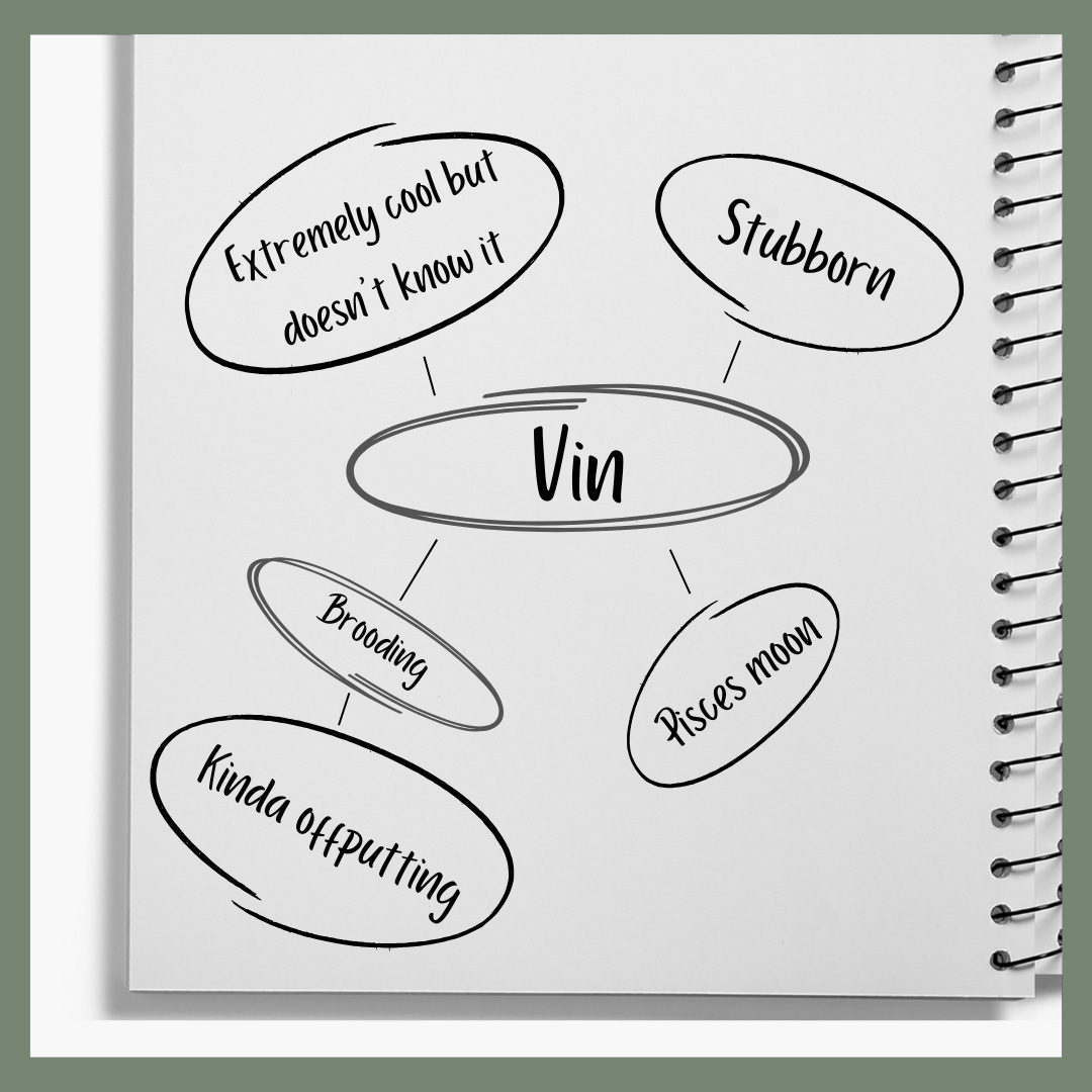 Mind mapping is also known for its versatility. It can easily be used to map out story beats, sure, but it’s particularly helpful with character work, too. In this case, it might look more like this: